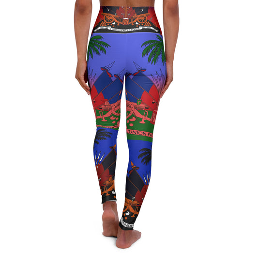 Haitian Flag Print High Waisted Yoga Leggings (AOP)